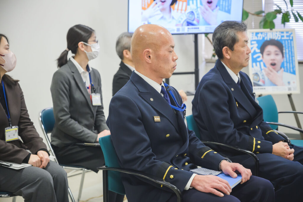 完成したポスター・パンフレットは、松山市消防局、消防署、松山市役所、業務説明会、各種イベントでの配布などで使用される予定です。