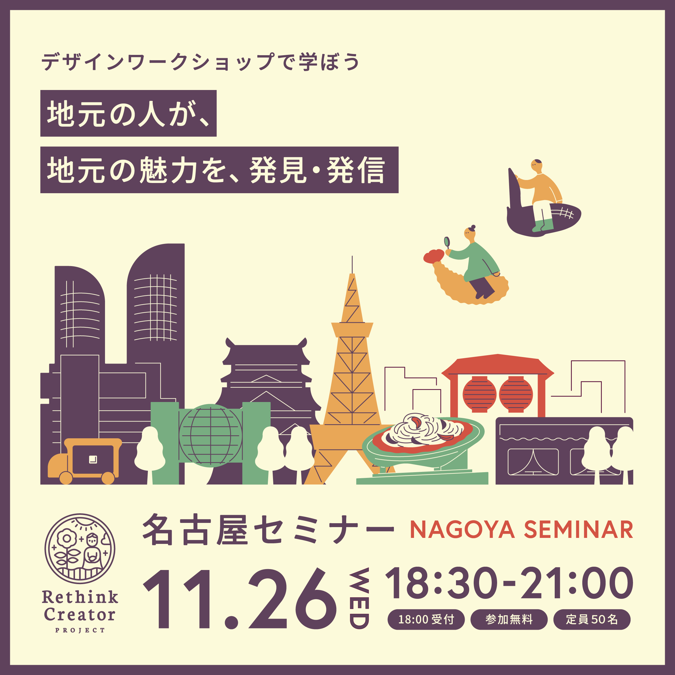 身近な魅力を発見し、それを簡単にデザインで発信するまでが一度に学べる無料セミナーです。